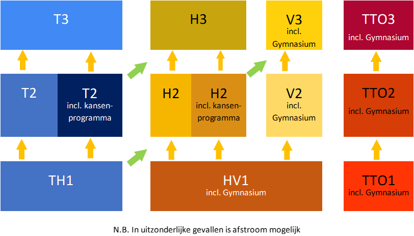 De doorstroommogelijkheden vanuit de kansklas naar leerjaar 2 zijn in onderstaand schema weergegeven: